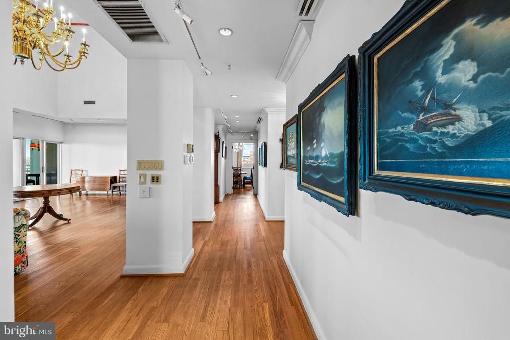 Set atop The Residences at the Colonnade, this rarely available residence has been quietly waiting for its next chapter. Nearly 3,700 square feet of dramatic volume, light, and architectural presence unfold across multiple levels, offering a remarkable opportunity to shape a truly special home in one of Baltimore’s most distinguished buildings. The first impression is unforgettable. A soaring two-story living room rises nearly 25 feet, anchored by a gas fireplace framed by custom built-in bookcases and crowned by a stunning oversized brass chandelier. Walls of windows frame sweeping views toward Johns Hopkins Homewood Field, while a cleverly tucked-away wet bar sits opposite the fireplace, making the space as functional for entertaining as it is beautiful. A conveniently located powder room sits just off the living area. The kitchen and adjacent breakfast room overlook the treetops and the university beyond and offer generous workspace along with an indoor grill, a rare feature for year-round cooking. The kitchen works beautifully as it is today, with a footprint that also allows for a future redesign should a new owner wish to personalize it over time. The home is arranged in two distinct wings, creating both privacy and a wonderful sense of space. One wing is anchored by the primary suite, a private retreat featuring a fireplace, marble bath with soaking tub and separate shower, dressing area, and two exceptionally large walk-in closets. A separate office overlooks the university grounds, and an additional bedroom with its own ensuite bath sits nearby on this side of the home. The opposite wing includes another bedroom suite with its own bath and walk-in closet, along with an elegant fireside library that could easily serve as an additional bedroom if needed. This wing also includes a private elevator that connects directly to the second level. Upstairs, an open balcony sitting area overlooks the dramatic living room below, while an expansive recreation room with a full bath offers endless possibilities for a media room, studio, gym, or guest space. The upper level also includes an extraordinary amount of storage, something rarely found in penthouse living. The home has been well cared for over the years, and a new owner may choose to update or personalize certain spaces over time. With its remarkable scale, architectural details, and commanding views, the opportunity to create something truly special here is undeniable. Life at the Colonnade includes 24-hour doormen, front desk service, on-site management and maintenance, and a fitness room. The residence also conveys with three deeded parking spaces in the building’s secure garage. A home defined not only by its size, but by its presence, its views, and the rare opportunity it offers.