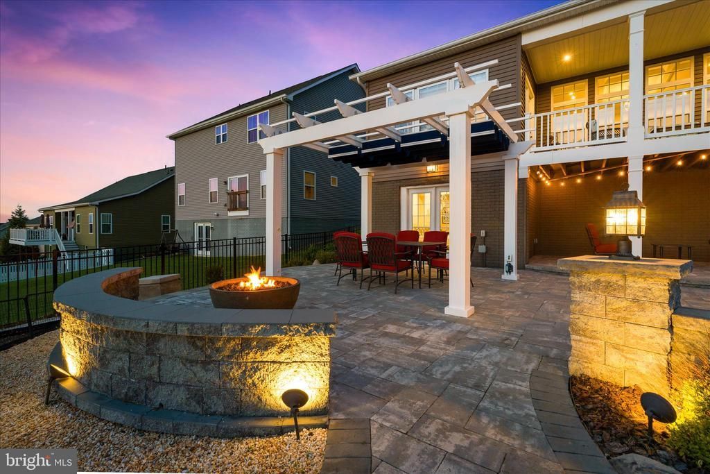 Welcome to 4702 Joe Foss Way—an elegant and fully upgraded Carolina Place model in Woodbourne Manor, Jefferson, MD. This spacious home offers four bedrooms with a designated office: two on the main level, one in the bonus area on the second floor, and a walkout-level bedroom downstairs. The main level features tall ceilings with custom trim work and a convenient main-floor laundry. The upgraded kitchen showcases quartz countertops with a large center island, a tile backsplash, a walk-in pantry, a gas cooktop, and stainless steel appliances, along with a bump-out morning room—making entertaining a dream. The morning room also opens to the covered rear porch, providing a second access point to the outdoor living space. Throughout the main level, enjoy beautiful hardwood floors, a wood staircase, designer lighting, and loads of natural light. The spacious owner’s suite with tray ceiling, large walk-in closet, and en-suite also offers private access onto the covered rear porch. The finished walkout basement includes a rec room, full bath, bedroom, wet bar, media room, and ample storage space, with double patio doors leading directly to a professionally designed paver patio featuring a built-in gas firepit, Trex pergola with retractable canopy, and future-ready conduit for expansion. Beneath the rear covered porch is a cozy, tucked-away outdoor retreat—creating an additional outdoor “room” for relaxing or entertaining. The property’s upgraded landscaping completes the outdoor experience, with professionally designed and planted beds, a covered front porch, and beautiful curb appeal that welcomes you home. The expansive patio area is where this home truly shines—featuring both fire and water elements that are beautifully balanced, creating an incredibly relaxing setting. What the sellers love most about this home is the incredible outdoor space—where natural elements come together to create a peaceful, inviting atmosphere. Whether dining under the pergola or enjoying a quiet drink on the patio, it’s a space they’ve truly loved and one that makes everyday living feel special. Backing to open green space with a walking path, you’ll enjoy a sense of privacy while still being connected. Located just minutes from Frederick, commuter routes including Route 340, and surrounded by nature trails and parks, this home offers the perfect blend of luxury, comfort, and lifestyle.